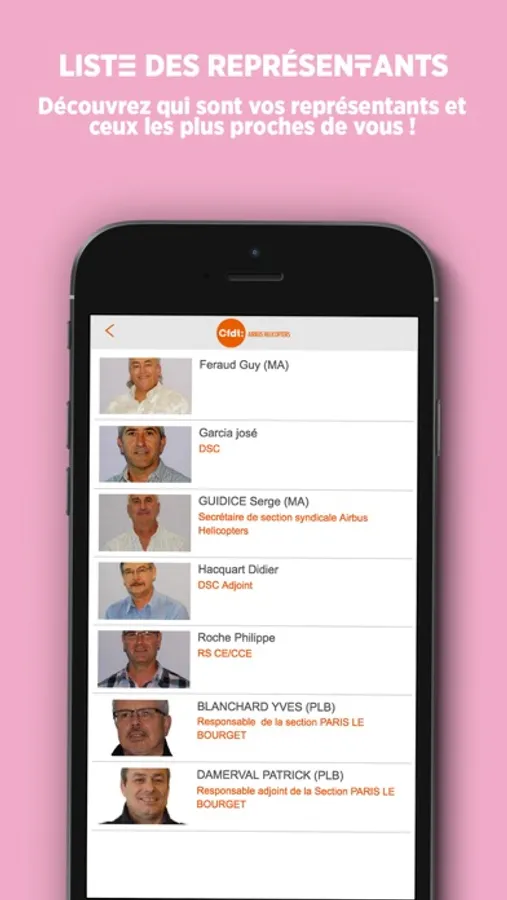 Grâce à l'application mobile CFDT AIRBUS HELICOPTERS, retrouvez toutes les informations, évènements, délégués, et gardez toujours votre délégué dans la poche.