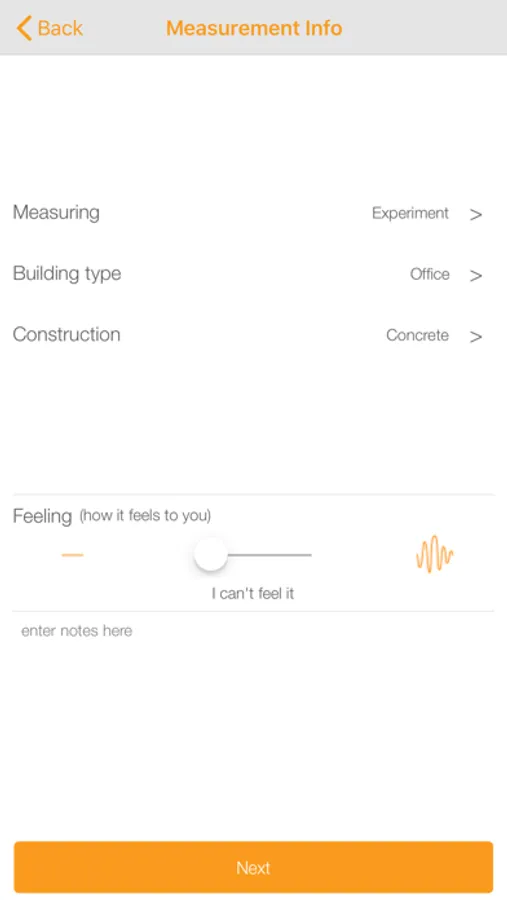 An easy to use interface allows the user to place the phone, set a countdown delay and record vibrations for a pre-determined length of time. The app then automatically performs calculations on the recording, giving the user instant feedback on the type and level of vibration.