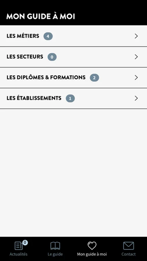 • Mon guide à moi : vous avez la possibilité de créer votre propre guide en sauvegardant les fiches et informations qui vous intéressent.