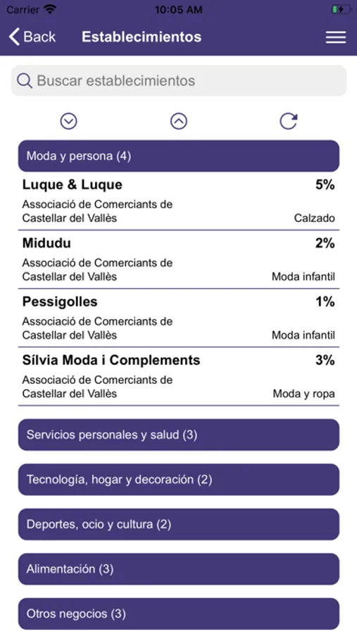 The Application can be used without having to be registered. In this case, users will have access to the list of establishments in the municipality of Castellar that have joined the campaign, of which relevant information is provided so that users can easily find what they are looking for and make any purchases in-person.