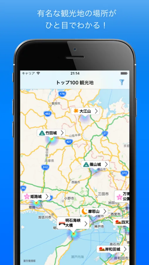 有名な観光地がひと目でわかるアプリです。