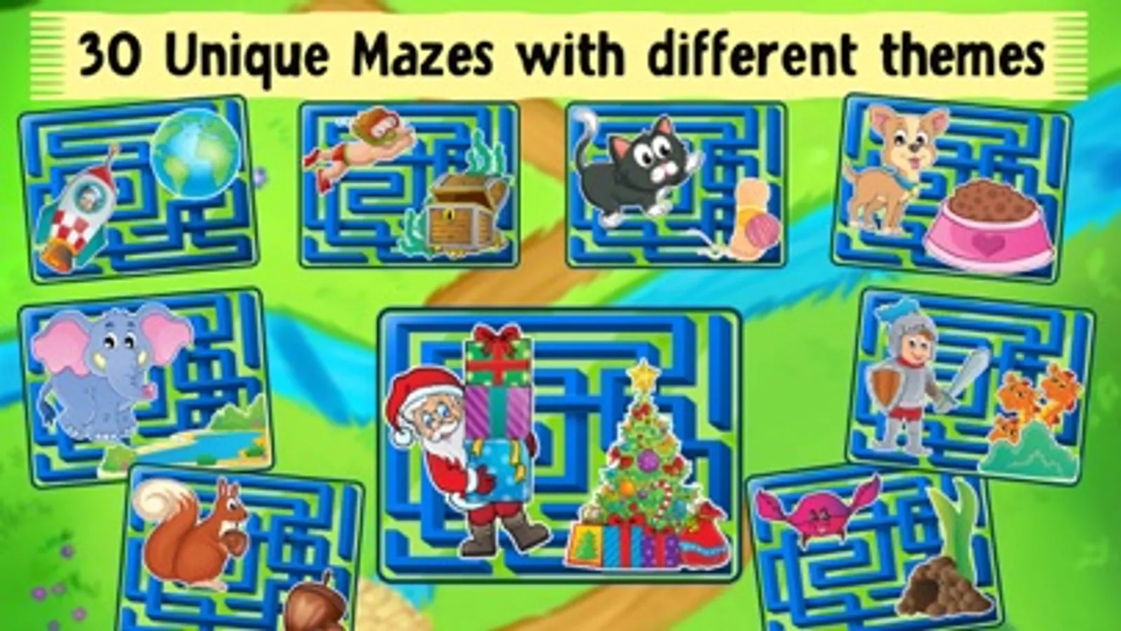 - 30 unique mazes with different themes and animated characters