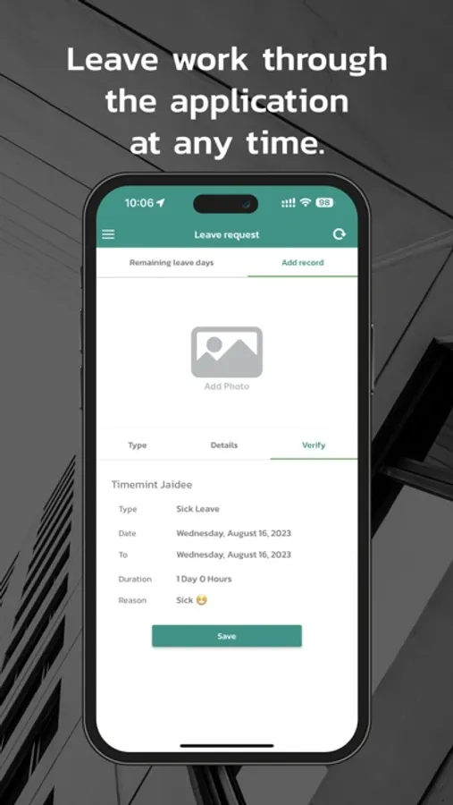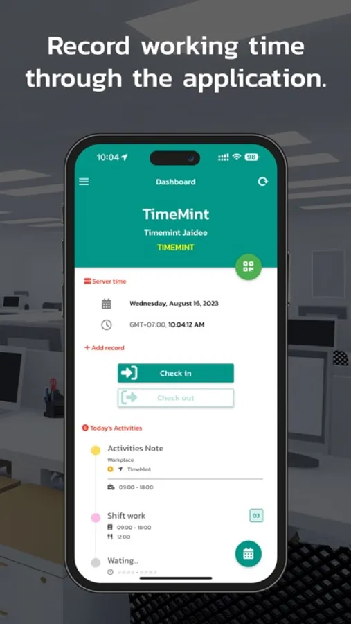 An application for employees to record check in - out time, and to manage absences, leave, and tardiness easily with a mobile app. Employees can check in - out on their mobile devices by themselves, without relying on other types of card punching systems. The mobile device must be authorized before it can be used to prevent employees from checking in and out for one another. Employees can submit leave requests or change their check in - out times immediately through their mobile phones, and managers can respond and confirm immediately through the TimeMint app.