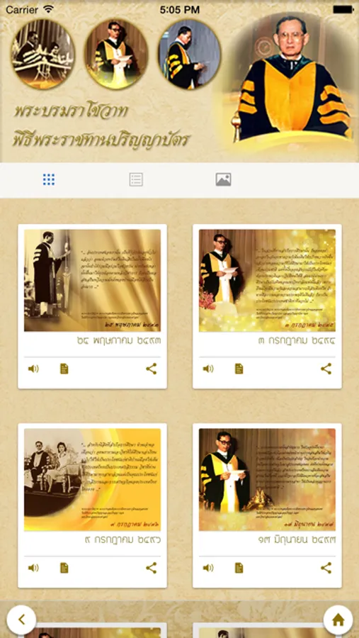 พระบรมราโชวาทที่พระราชทานแก่บัณฑิตมหาวิทยาลัยเกษตรศาสตร์ เผยแพร่เพื่อให้ประชาชนชาวไทยได้น้อมนำไปประยุกต์ใช้ในการดำเนินชีวิต และสามารถแชร์ต่อให้เพื่อนผ่านแอพได้ทันที