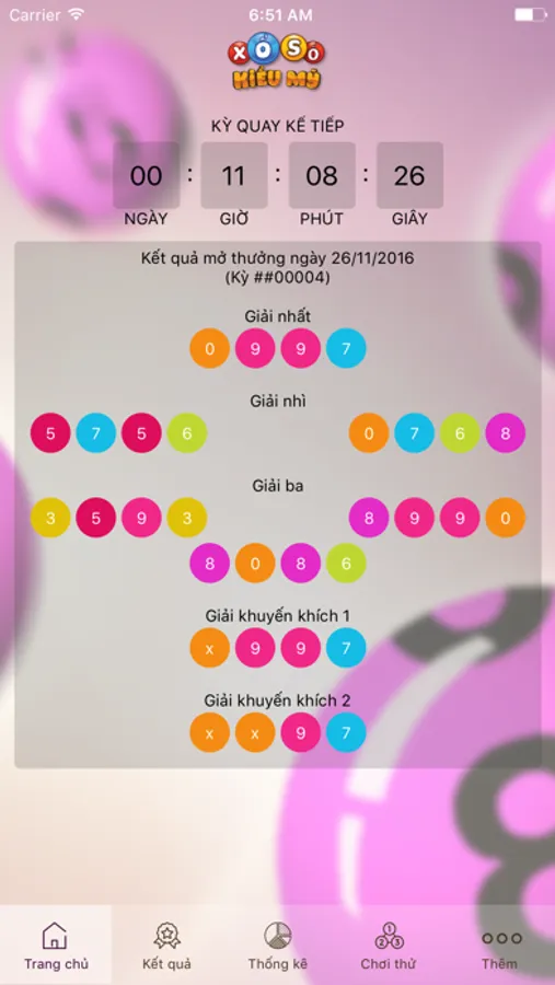 Thông báo kết quả hằng ngày. Thông báo khi sắp tới giờ quay thưởng xổ số điện toán tự chọn Vietlott . Sau khi quay thưởng, hệ thống báo kết quả cho bạn.