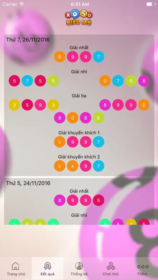 Danh sách kết quả Vietlott từng kỳ quay thưởng.