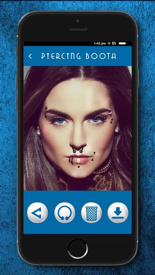 If you love piercing art and want a makeover on your pics, Piercing Photo Editor Booth is a perfect tool which allows you to manipulate your pictures easily and get pierced without pain or effort. Get a whole piercing studio only for yourself, try out different designs at distinct places on your body. Use this photo montage maker to add stickers for pics – it doesn't matter whether you want to get real body piercing jewellery or simply pull a prank with your friends, this unique picture booth will add piercings to photos easily so that you get a realistic pic montage. Hurry up, download your newest free picture editor booth, take a selfie, or choose a pic from the gallery of your smartphone or tablet, and add stickers to your selfie pic – wherever you imagine it to be. When you're done, use the option for sharing on social networks, or save to the gallery. Piercing Photo Editor Booth, the newest trend in picture editing!