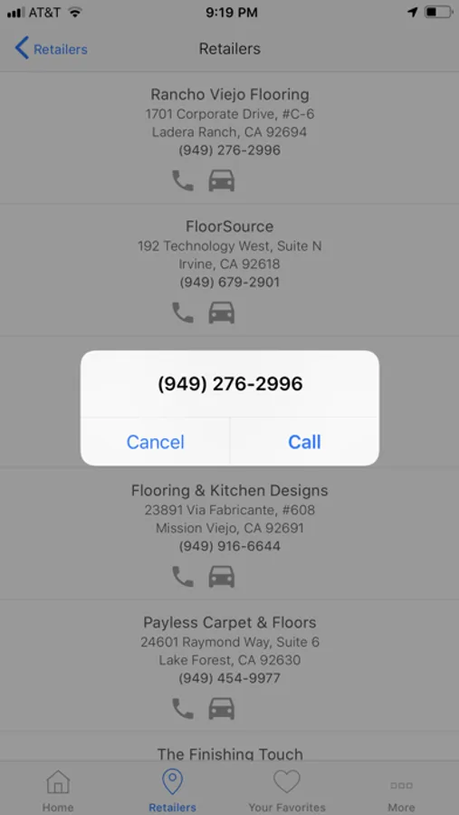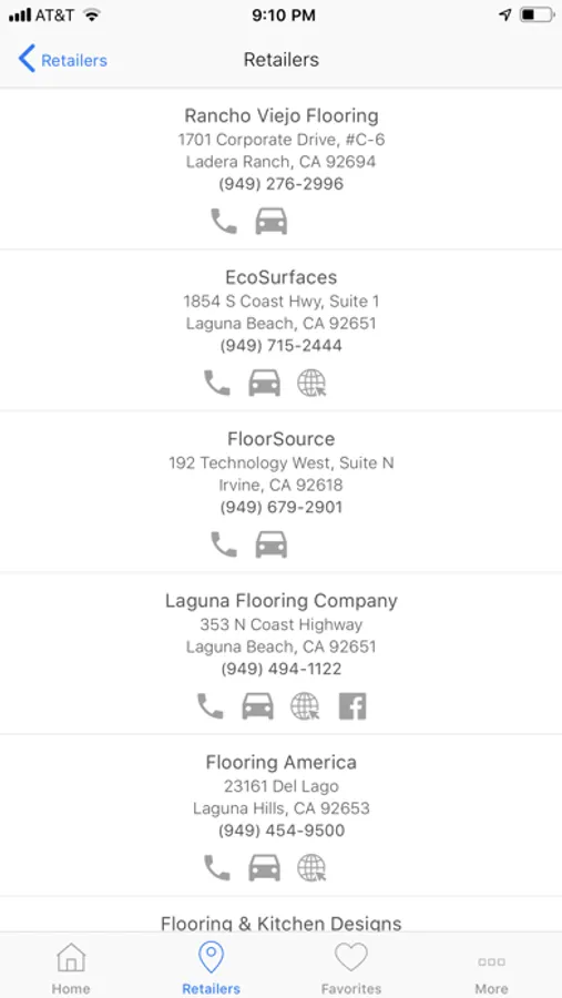 The Retailer Locator supports call (if device supports calling), get directions and, if there is a website and/or Facebook link, open retailer link(s) in browser.