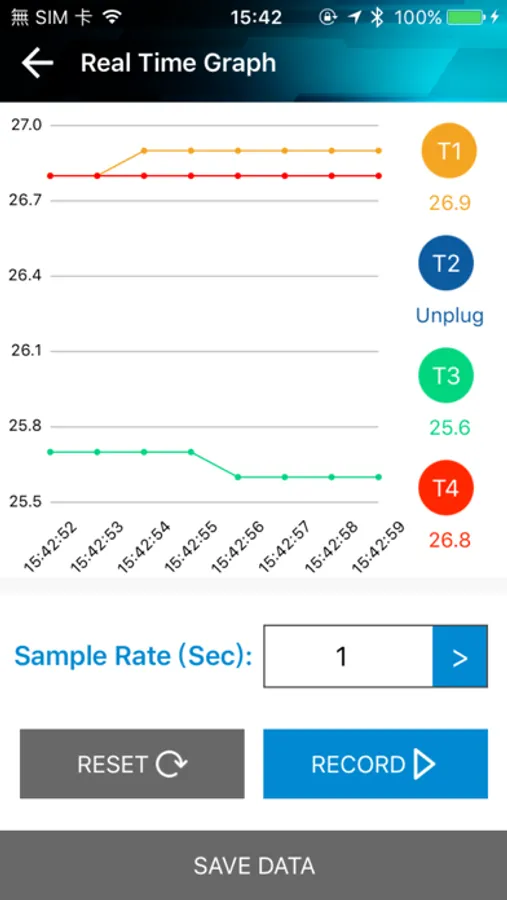 • Log temperature data and save on your smart phone or tablet at interval from 1 to 60 seconds