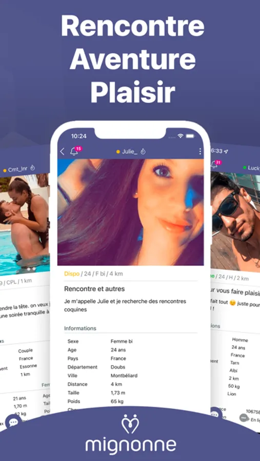 Osez Mignonne, une application mobile différente de rencontre occasionnelle pour vous faire de nouveaux contacts de façon discrète, libre et anonyme.
