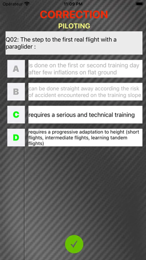 This application allows you to revise important subjects (weather, piloting, equipment, regulations, flight mechanics) to prepare your theoretical certificates of free flight (paraglider, hang glider), whether it is the initial (green level), pilot (blue level) or confirmed level (brown level) !