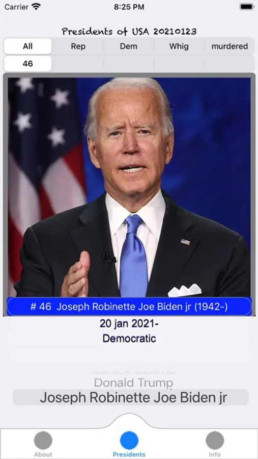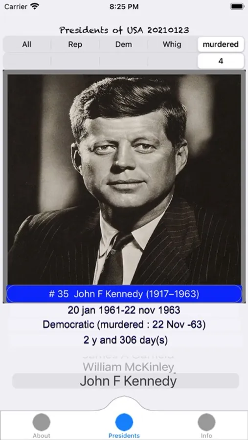 Filter the presidents (all, party, and murdered)