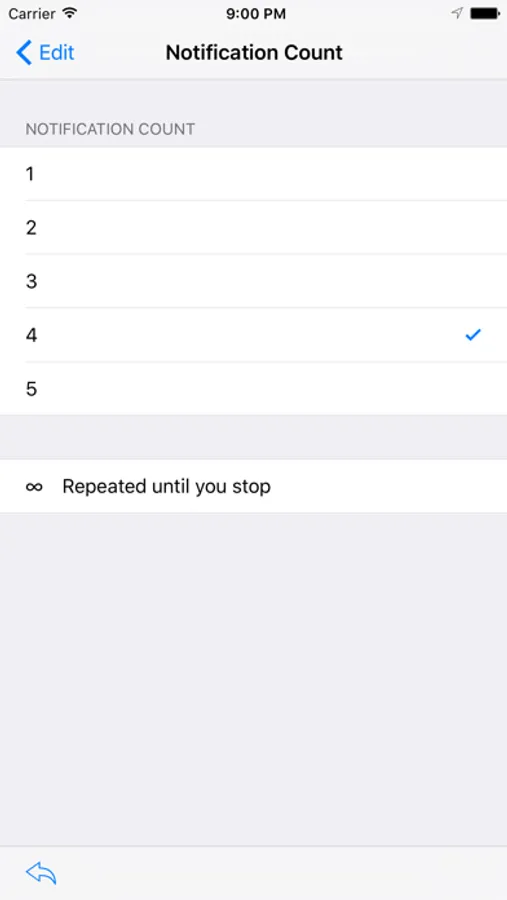 - Repeat alarm. (1,2,3,4,5 or infinite)