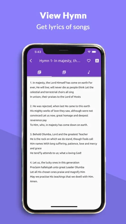 This mobile app contains all the hymns rightly written, composed and owned by Brotherhood of the Cross and Star through the inspiration of the Holy Spirit personified, Leader Olumba Olumba Obu, the Sole Spiritual Head of the Universe and His Christ, His Holiness Olumba Olumba Obu, King of Kings and Lord of Lords, Leader, Unified Universal theocratic council.