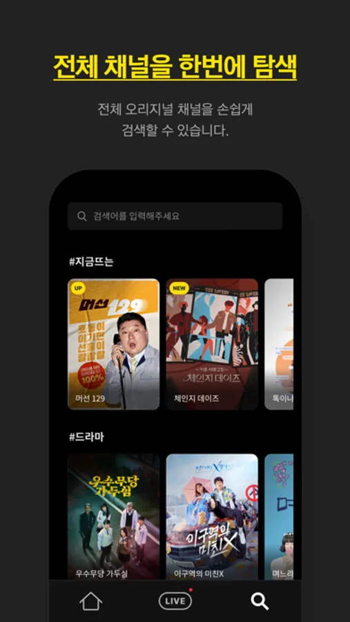 드라마, 예능, 음악 등 다양한 장르에서 오리지널 콘텐츠 영상을 시청할 수 있어요.