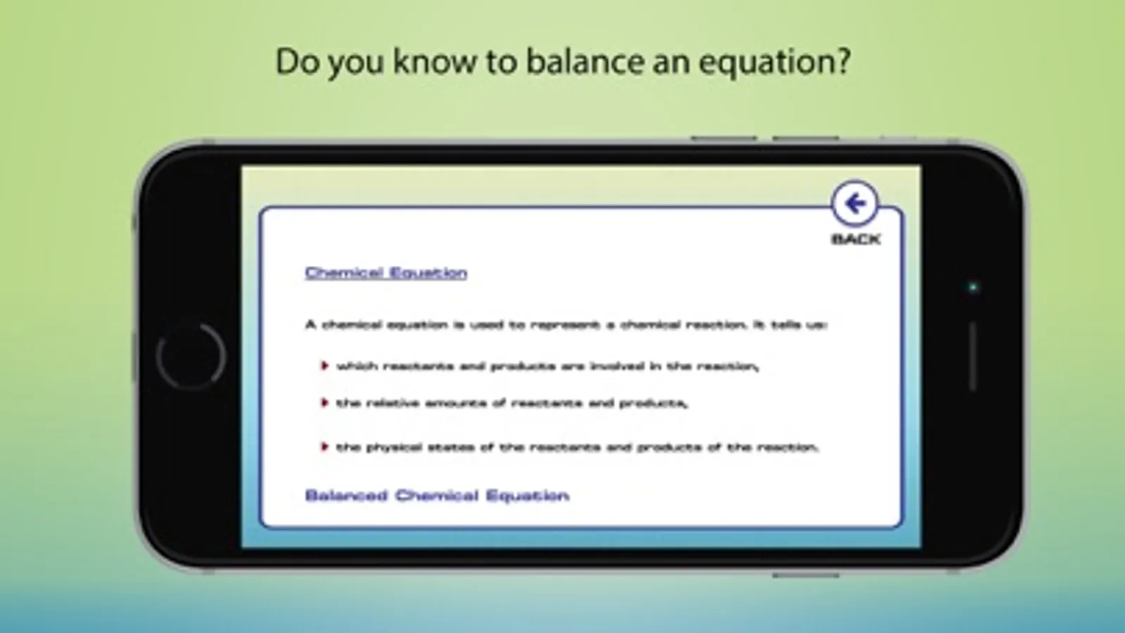 This educational application helps students understand and learn the equation balancer, chemical reactions, chemistry, balancing chemical equations and chemical formula in an easy and engrossing way.