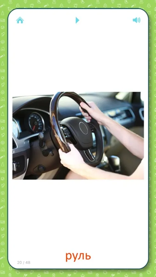 70 карточек Домана, профессионально озвученных в студии, и встроенная развивающая игра «Найди картинку», помогающая малышу еще быстрее выучить слова.