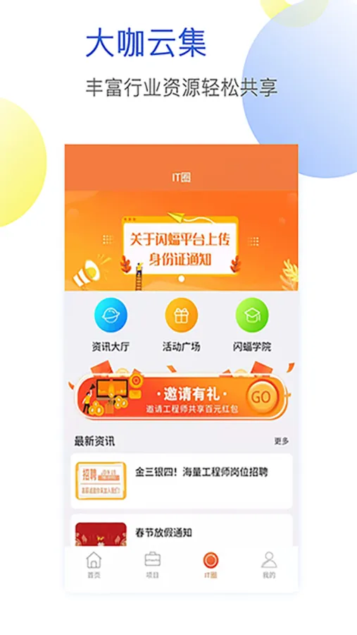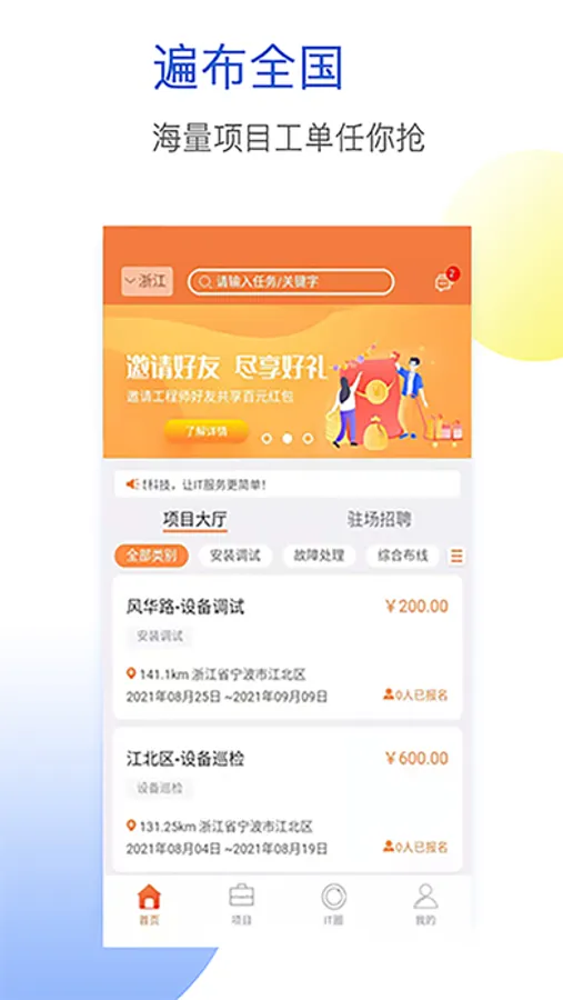 1、 平台每日发布覆盖全国的IT项目工单,随时随地可参与抢单