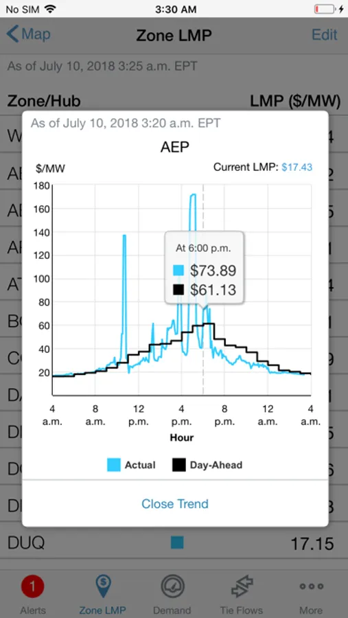 • Receive alerts when wholesale power prices in your area reach the level of your choosing