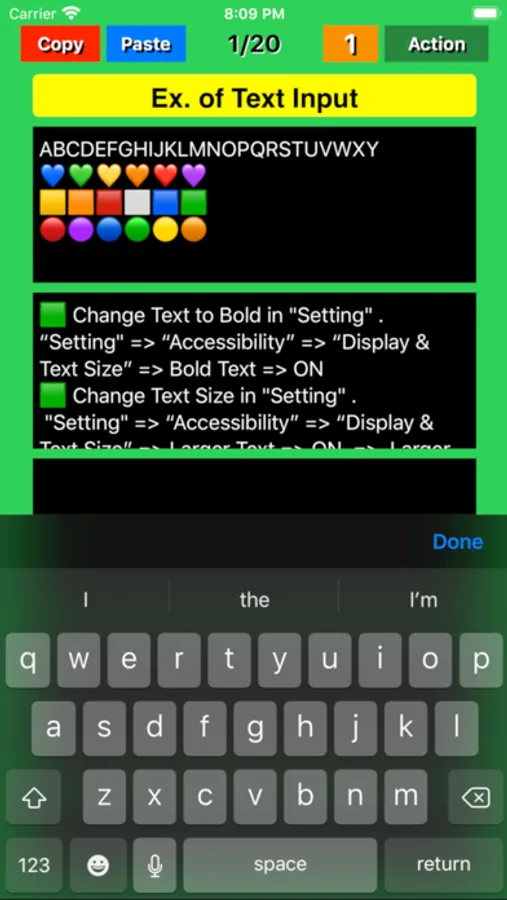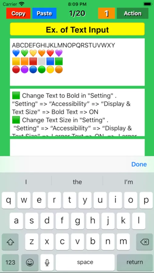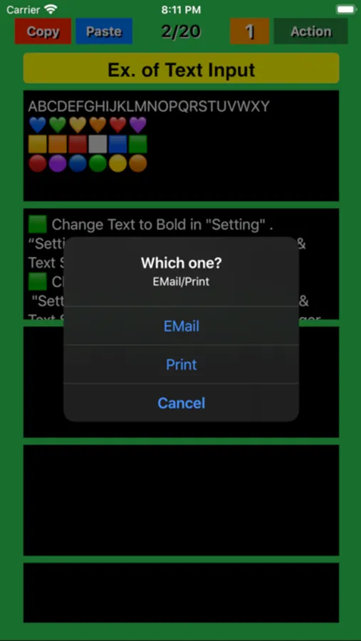 ● By tapping "Copy" button for short time on each page, the entered title and text will be stored in the device's memory. The text is also copied to the clipboard. After tapping the "Copy" button for a short time, you will hear a "click" sound of successful copy.