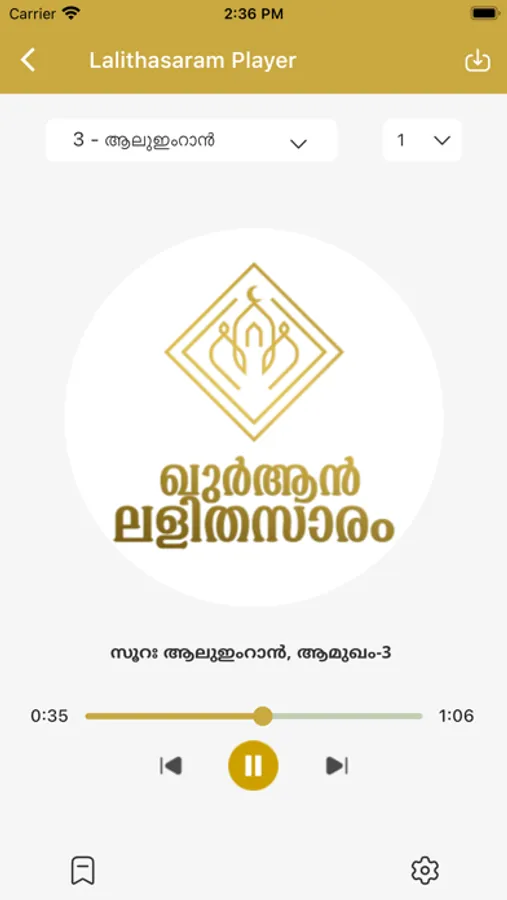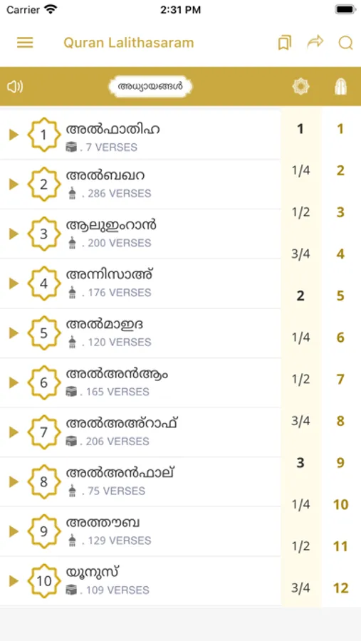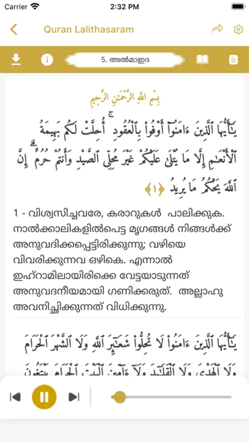 Quran Lalithasaram is a free Ios application which enables easy understanding of Holy Quran by providing simplest Malayalam transcript. We are open to hear your suggestions to make our product the best Malayalam Quran application.