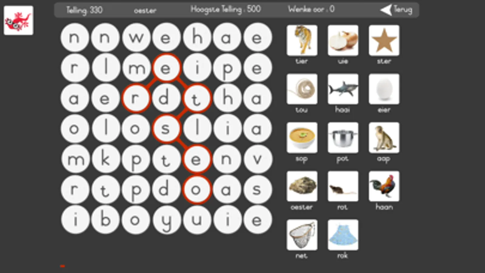 Woordsoektog is ‘n speletjie om woorde binne ‘n legkaart van ander woorde te soek. Met hierdie toepassing kan jou kinders heerlik ontspan terwyl hulle ook hul brein oefen. As jy vashaak is daar ook wenke wat jy kan gebruik. Jy word ook beloon met ekstra wenke vir elke 250 punte. Ons toepassing bevat meer as 500 afrikaanse woorde met 'n prentjie wat ure se pret verskaf en ook jou woordeskat verbeter.