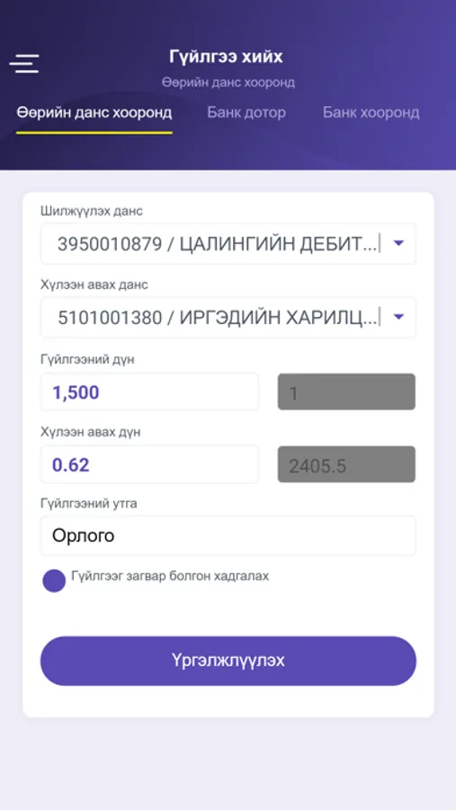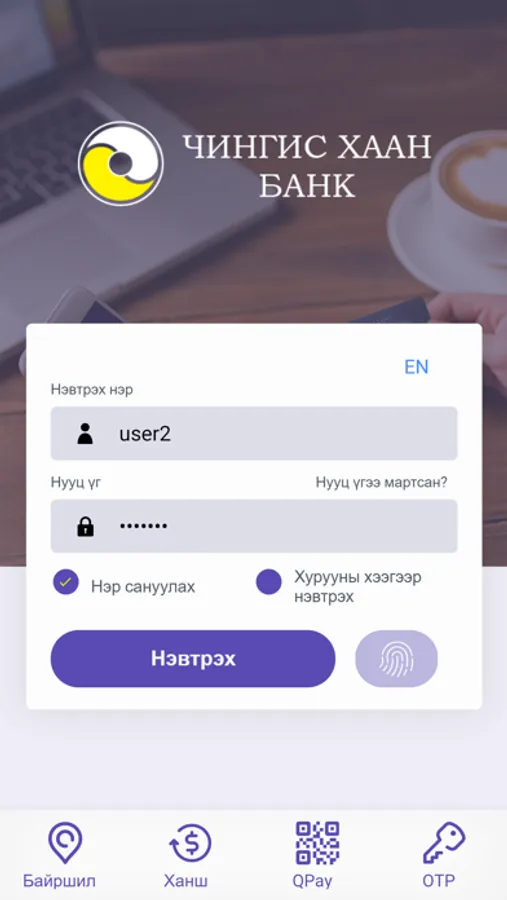 Та цахим банкны хэрэглэгч бол өөрийн үйлчилгээний хэрэглэгчийн нэр, нэвтрэх нууц үгээ ашиглан нэвтэрнэ үү.