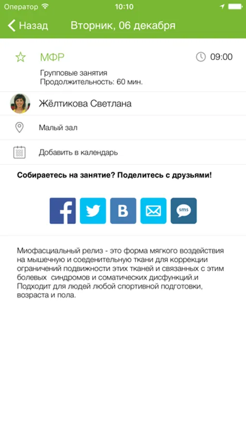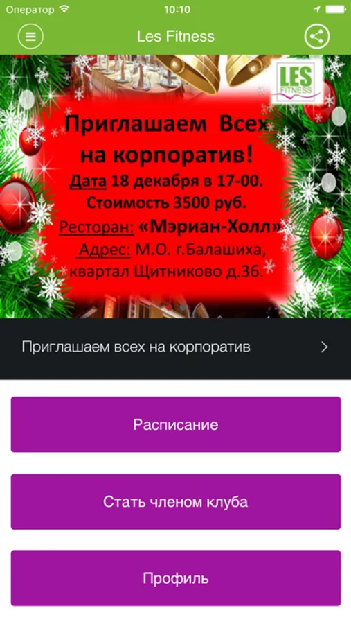 С помощью приложения вы можете следить за новостями, расписанием клубов, оперативно получать информацию об изменениях в расписании и специальных предложениях.