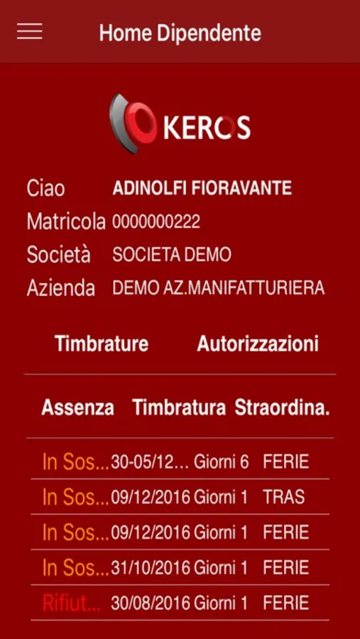 App per l'accesso mobile a Keros per la rilevazione presenze e le richieste dei permessi