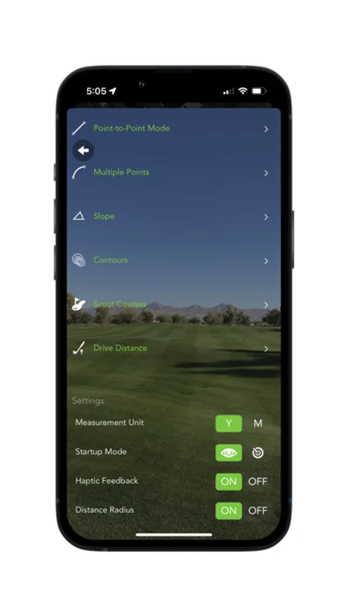 Get distances (in yards or meters) to any target from your current location. Also get distances between any set of points.