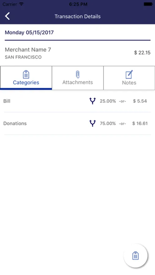 Split transactions by percent or amount and easily assign to multiple categories for streamlined organization and quick reference.
