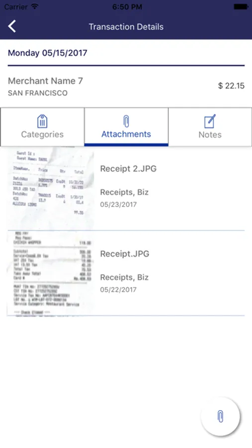 Quickly add notes, snap photos of receipts and upload attachments to each transaction.