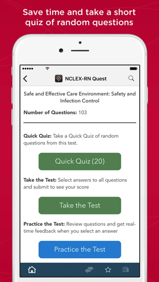 NCLEX-RN Quest is the easiest, most convenient way to study for the NCLEX-RN exam. Different test modes allow you choose a form of study that works best for you, whether taking a full test and seeing how you did or reviewing questions and their answers one at a time.