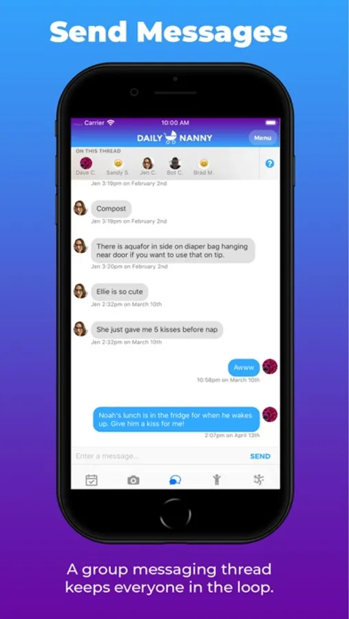 Messages keeps everyone on the same page. A group messaging thread between nannies and parents keeps all your care related communication in one place.