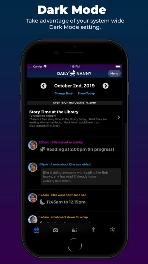 Daily Nanny is the best way for parents and nannies to share photos, track hours and overtime, keep in touch, and track important data about their kids.