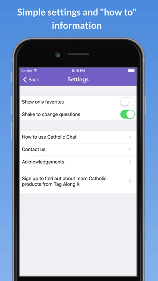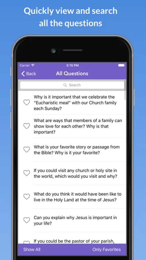Catholic Chat is an app to help Catholics drive fascinating and introspective conversations, bringing you closer to God. For families, youth groups, RCIA classes, CCD, youth ministers ... anywhere you are seeking to have dynamic conversations about your faith. Catholic Chat will present you with an interesting question or topic which you can then ask to your kids, family, friends or whomever. Have real, meaningful conversations that will bring you closer to each other, and to God.