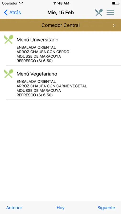 - Ver la programación semanal de menús en cafeterías.