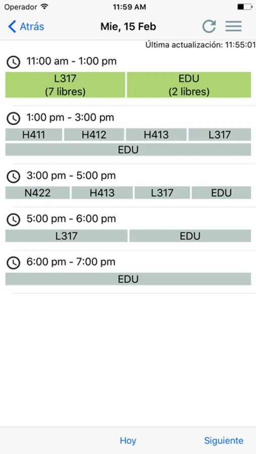 - Ver la disponibilidad de las aulas libres en el campus.