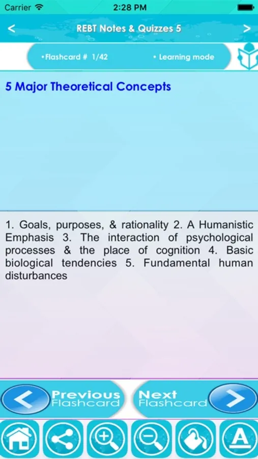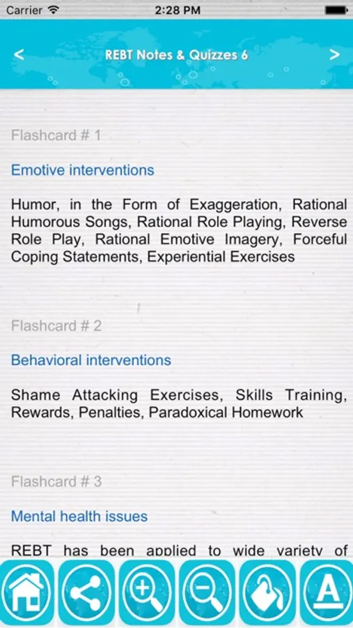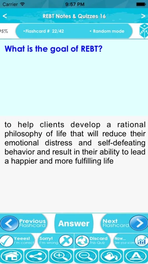 This app is a combination of sets, containing practice questions, study cards, terms & concepts for self learning & exam preparation on the topic of Rational Emotive Behavior Therapy.