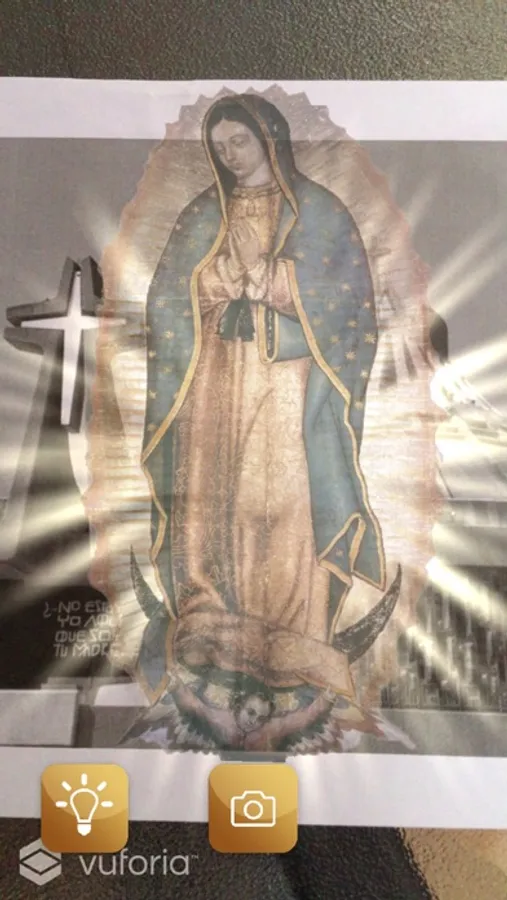Abre la aplicación, enfoca la Basílica de Guadalupe impresa y disfruta en Realidad Aumentada (RA) de la Paz, Belleza y Bondad de Nuestra Señora de Guadalupe la Patrona de America.