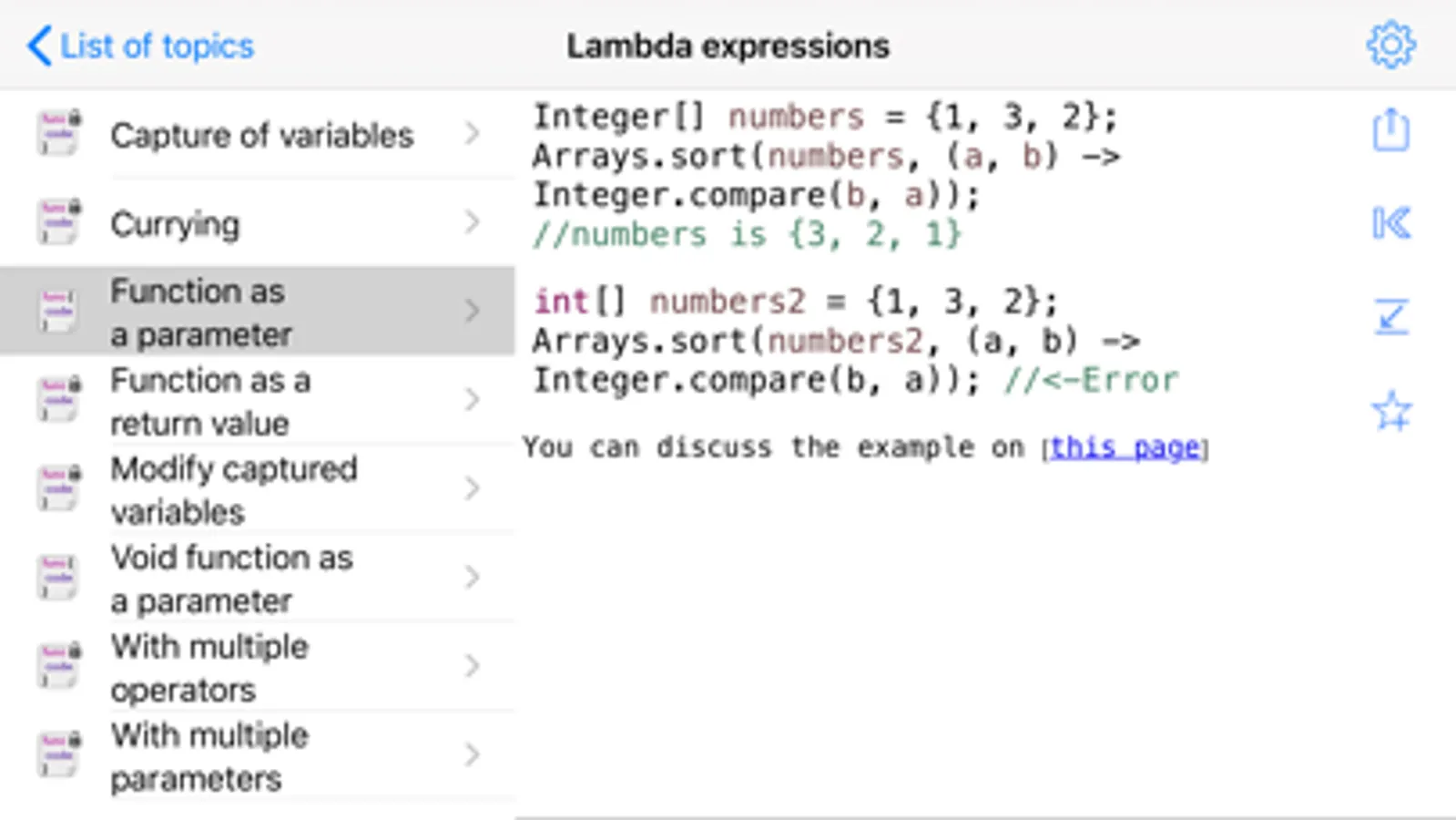 A must have app for any consultant. Rather than being a lexicon of coding descriptions and commands, as so many of these apps are, Fedor has provided a reference tool for real-world developers. There are three main areas of the app; list of topics leading to subject menu, explanation page, settings. Starting with the list of topics, the index is broken into logical sections that direct the developer quickly to a sub-menu and the area needed - precisely where a developer would expect to find what they’re looking for. The explanations in each and every page are succinct, well thought out, and clearly presented with excellent examples where needed. There is no boiler plate generic definitions here. The ‘settings’ section is equally efficient. It allows to switch to dark, change font and size, upgrade/release additional language examples, or simply upgrade to a full and ad-free version. It should be noted that the cost and features of a fully upgraded ‘Codes recipes’ app is the same as buying the ‘Codes recipes PRO’ version. Fedor, thank you for developing this app - it’s excellent.