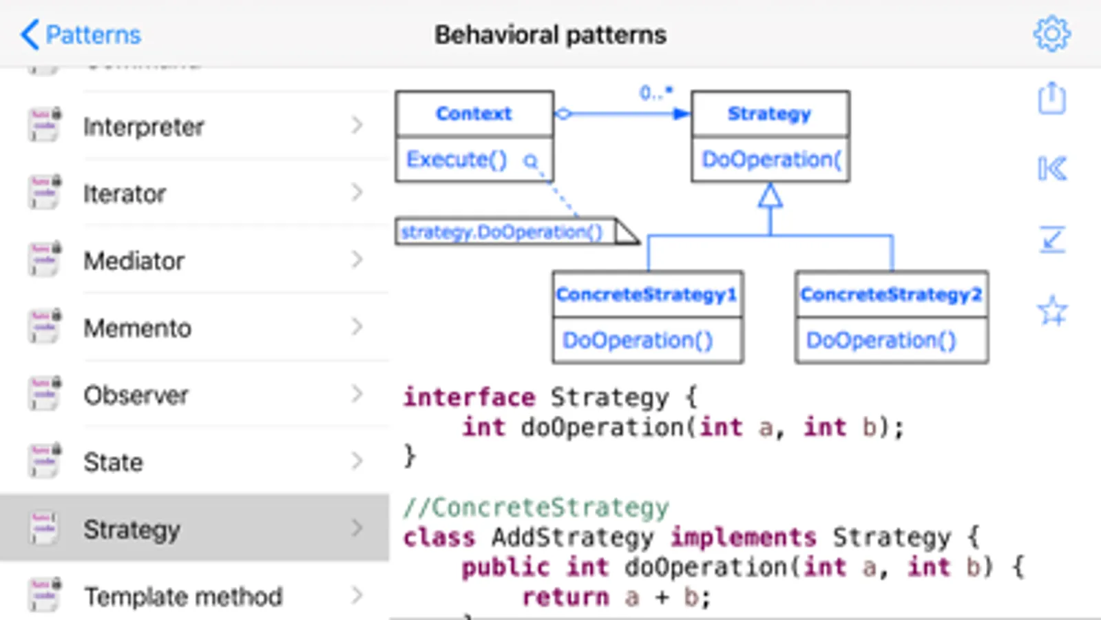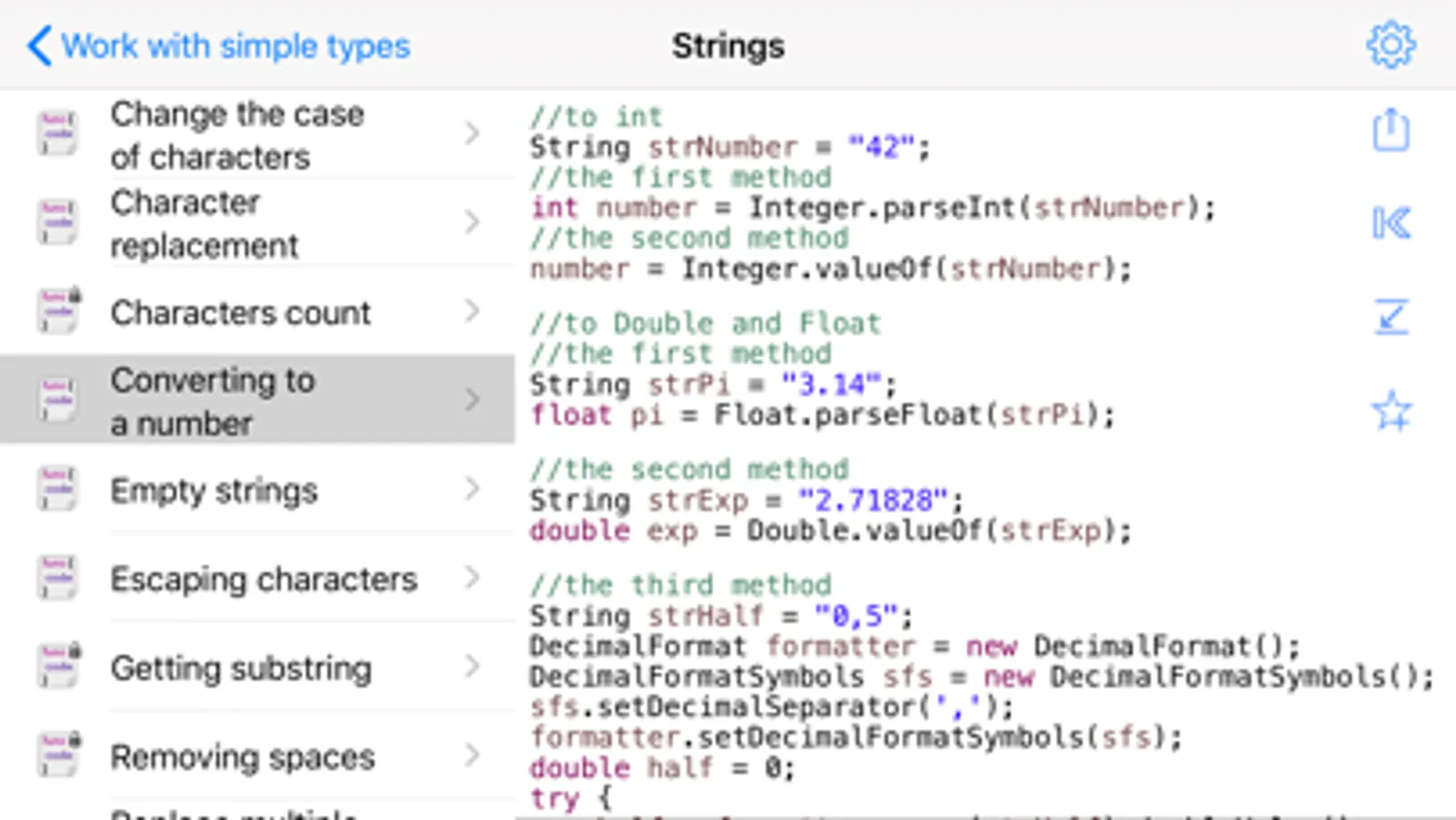 • The application is a good tool during the exam or the preparation to the interview because it contains a reference to frequently used operations in different programming languages.
