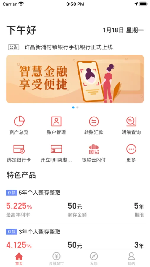 手机银行为您提供账户查询、账户管理、行内转账、跨行转账、本人账户互转、活期转定期、定期转活期、通知存款开立、通知存款支取等丰富的移动金融服务。
