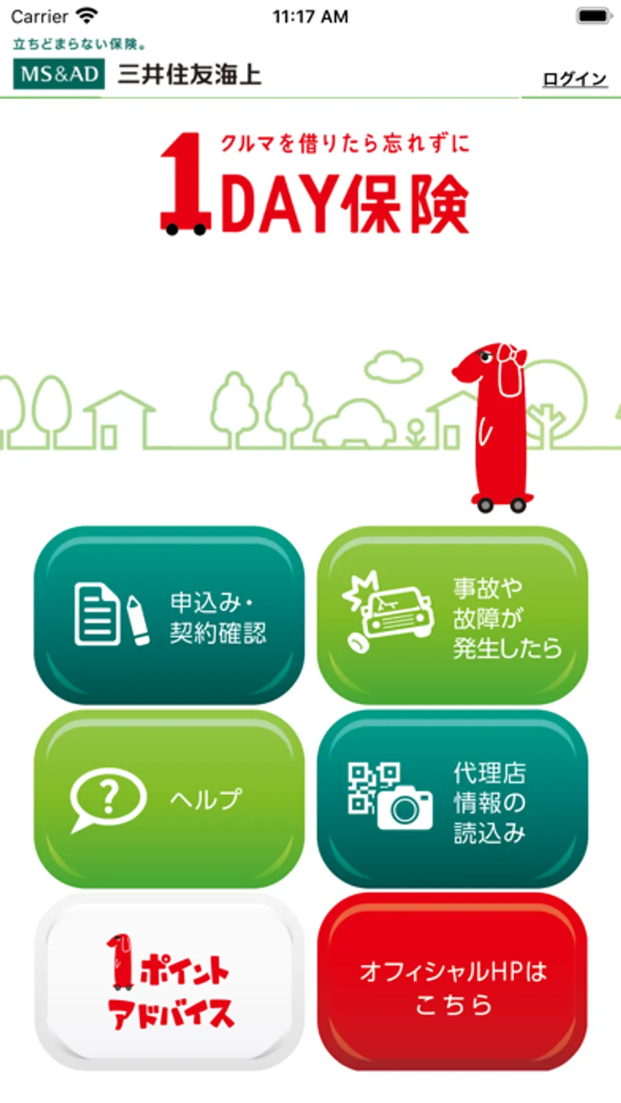 「1DAY保険」のお申込みが簡単にできる専用手続サイトへのログイン機能(※2)、事故やケガ、自動車の故障などが発生した際にスムーズな連絡が行える機能(※3)および役立つ情報を提供する機能があります。