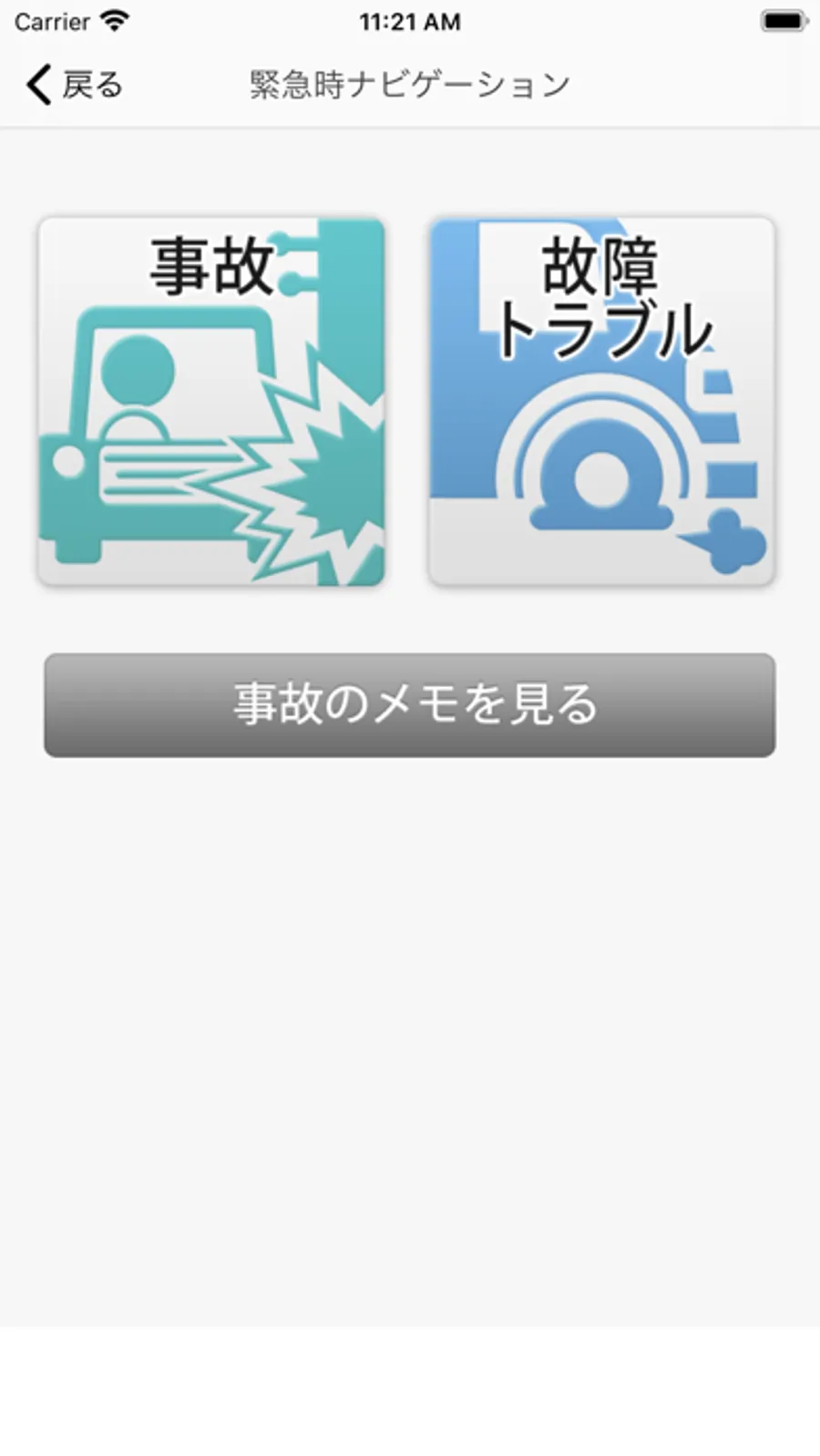 自動車の事故や故障の際に必要な初期対応を優先順位の高い順にナビゲートしますので、この機能を活用すれば落ち着いて対応ができます。