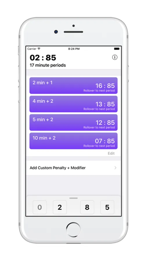 For referees and coaches alike calculating when your player is out of the penalty box is a common issue. Penalty Box Calculator tries to remedy this by allowing quick calculation of penalty end times based on the period size and length of penalty. You just have to enter the current clock time and Penalty Box does all the work with normal and running configurations just a slide away.