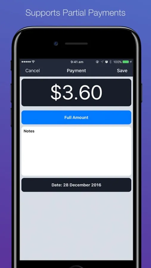 Has the ability to support partial payments. Since sometimes they can not always pay the full amount back in time, you can have partial payments and keep track of how much they still owe you.