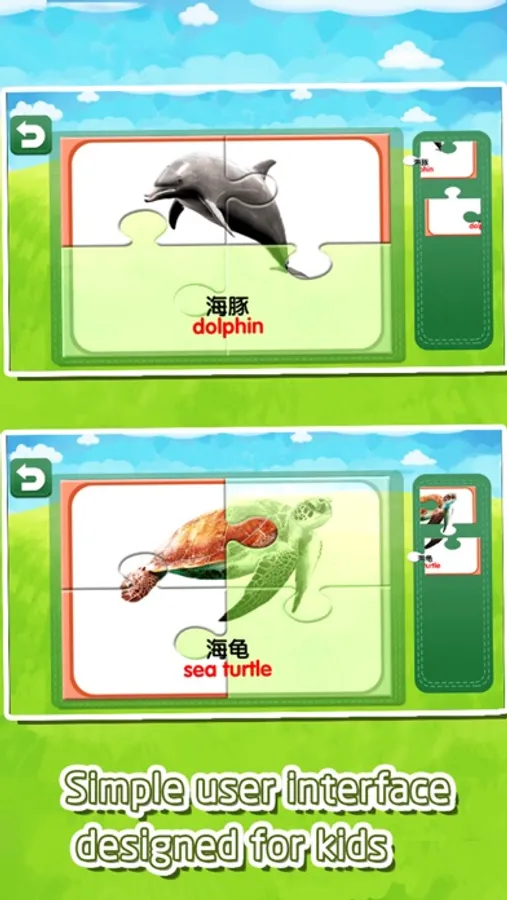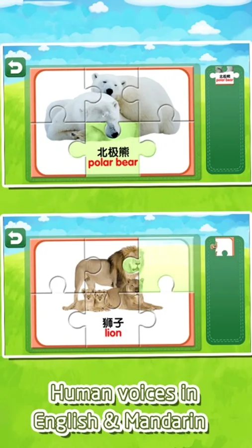 This jigsaw puzzle educational game is designed for 2-5 years old kids which featured with large range of common things in our daily life. We also used a variety of sound to attract the kids and develop their interest. Players can select the jigsaw puzzle in 4pcs, 6pcs or 9pcs which is suitable for different age of kids. After the kids completed the jigsaw puzzle the app will show and pronounce the words in English and Mandarin. It also help the kids to memorize the spelling of the words.