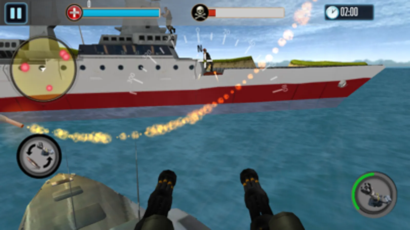 The enemy has attacked your marine base and with the help of one of the largest air craft carrier, they are about to enter in your sea water. They need to be stopped before they invade the whole country. Enemy is backed by the apache helicopters, F16 aircrafts, naval warships and their special team is on the motor boats .