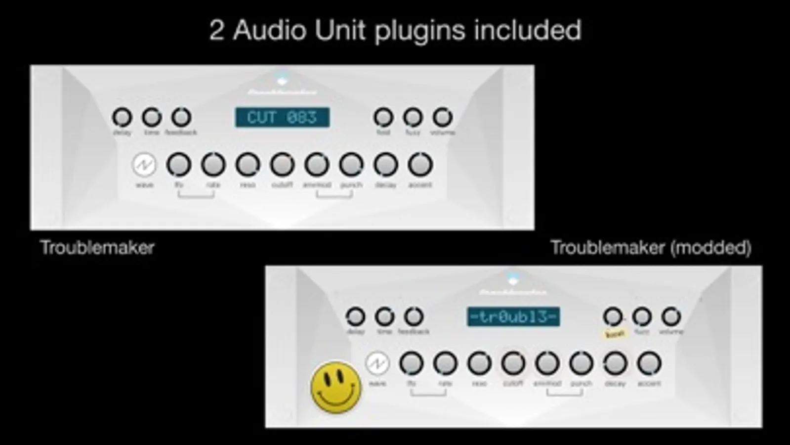 - Comes with an extra AUv3 plugin version of a modded Troublemaker unit
